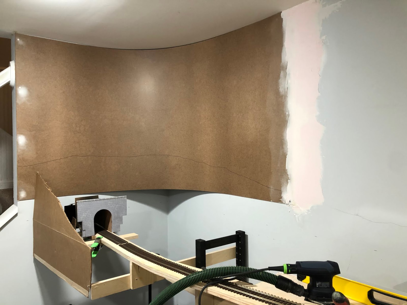 Meanwhile, the spackle is drying on the new coved corner by Stares Tunnel. I should be able to start painting backdrops tomorrow.