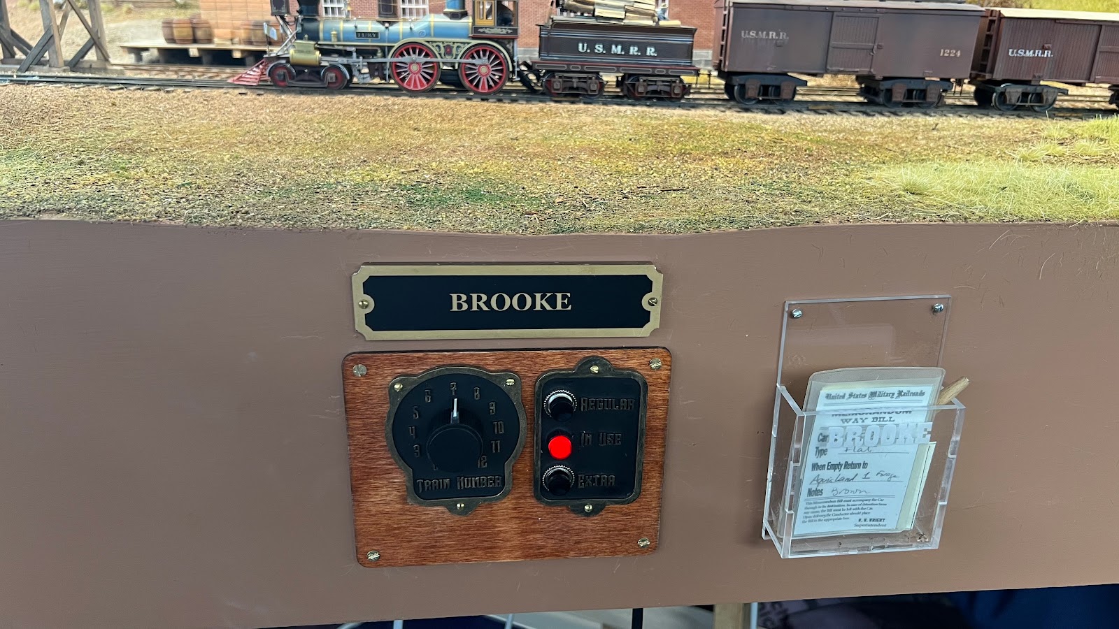 The Falmouth telegraph station is mounted on the curved section of the fascia near the balloon camp and north of the turntable. I needed to reinforce the curved fascia with a scrap of 3/4 inch plywood to flatten it out and stiffen it.