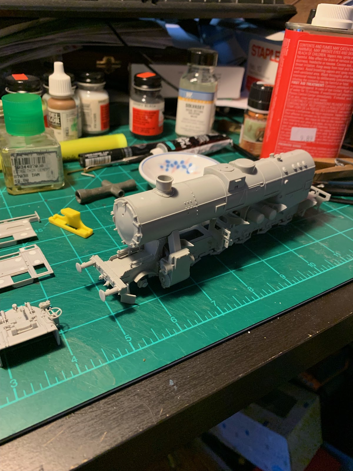 Dan built the Kreigslokomotive. It is a 1/72nd scale model by Hobby Boss. This was the second model Dan built for the diorama. The first was a Revell 1/87th scale kit of a German Kreigslokomotive. He did a nice job on that, but the kit was too basic. So, we upped the scale the trains to 1/72nd. This kit is much better detailed. Rob delivered the locomotive to Virginia on one of his visits.